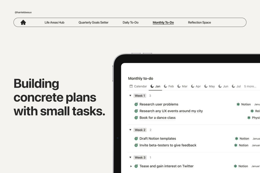Many people fail to create a concrete plan to achieve their resolutions. By starting small with daily tasks, it makes weekly and thus monthly plans achievable. By consistently investing a few hours a day, your (seemingly difficult) yearly vision will come true without you realising.